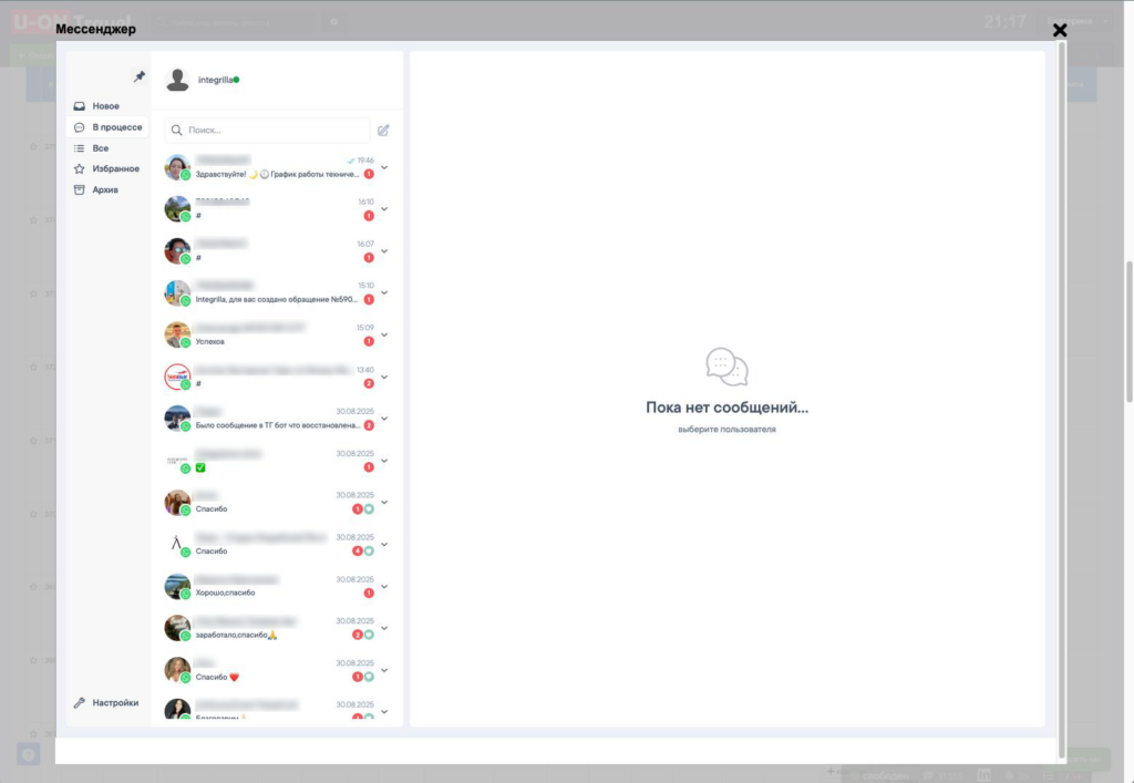 Все входящие и исходящие сообщения фиксируются в CRM, сохраняя историю общения.