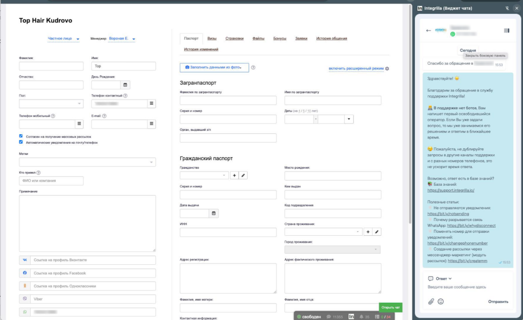 Результат: менеджеры получают быстрый доступ к общению с туристами без переключений и лишних действий, а агентство — экономию времени.
